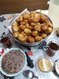![]() Enfes pişimiz | ![]() Yanında çay ,bal ve aşure ile yenen leziz lokumumuz (loğumi) |